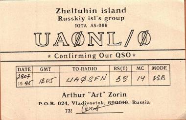 - Зорина Артура Анатольевича, UA0NL, член RRC # 158;