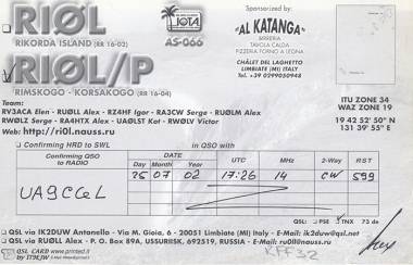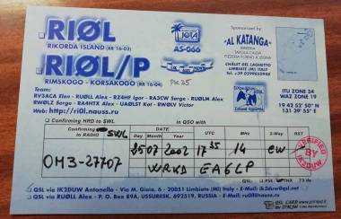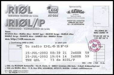 Экспедиция RI0L/P на остров Большой Пелис (архипелага Римского-Корсакова) проведена 25 июля 2002 года в составе:
