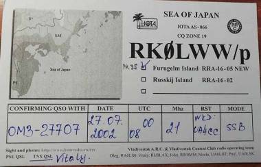 Совет Радиолюбительского островного клуба Приморского края просит предоставить данные по этой экспедиции!
