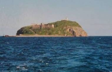 Команда и вид на остров с моря: