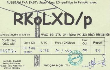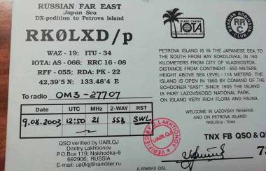Совет Радиолюбительского островного клуба Приморского края просит предоставить данные по этой экспедиции!