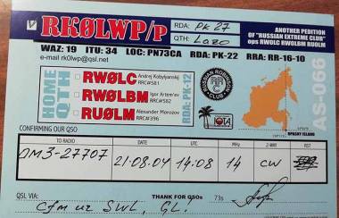 Участники экспедиции RK0LWP/P признали данную QSL, как ошибочно выписканную..