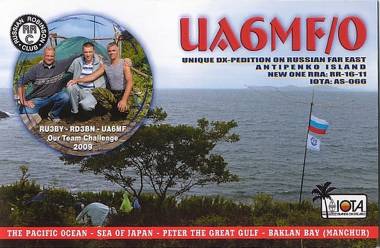 Экспедиция RU3BY/0, RD3BN/0, UA6MF/0 на остров Антипенко (NEW ONE) проведена c 25 по 27 августа 2009 года в составе: