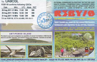 Экспедиция RU3BY/0 на остров Антипенко проведена c 29 августа по 1 сентябряа индивидуально: