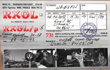 - Морозова Александра Валерьевича, RU0LM, член RRC #396;