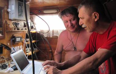 Для экспедиции использовалась специальная QSL, далее показания GPS и Пепелац на швартовке (антенна с берега):