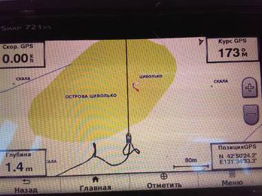 Команда, показания GPS-приемника, вид на остров с юго-востока: